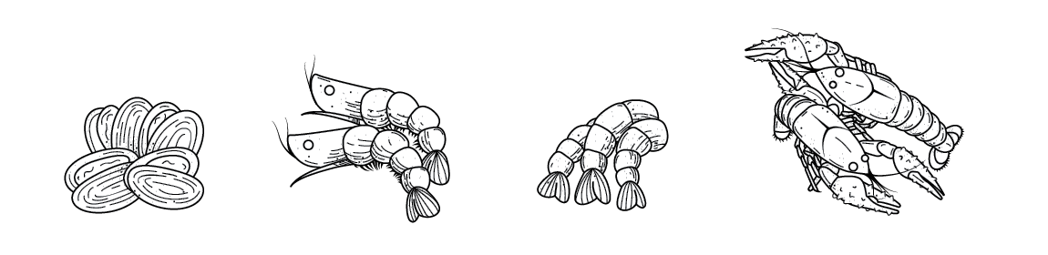 1/2 lb Whole Shrimp, 1/2 lb Mussels, 1/2 lb Crawfish